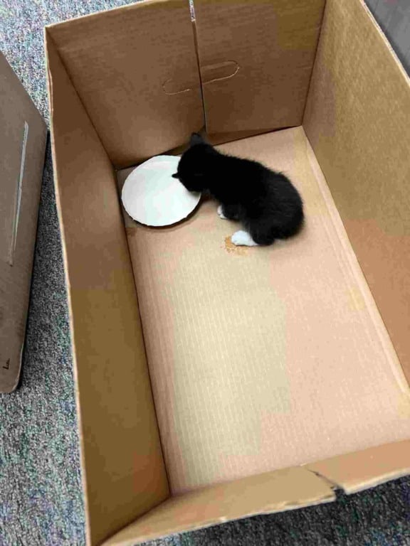 Todos no escritório rapidamente se puseram em ação. Conseguiram localizar os gatinhos, mas não conseguiram chegar até eles de imediato.