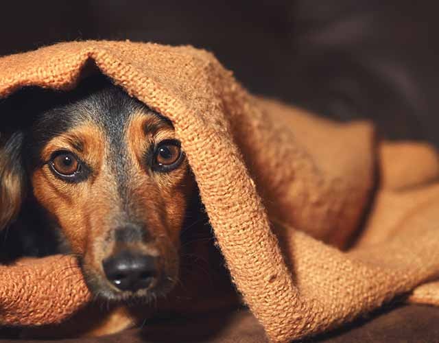 É muito importante também que o cachorro se sinta seguro e protegido em momentos de medo e estresse. Por isso, prepare uma casinha ou um esconderijo para ele poder se abrigar. Coloque cobertores nas janelas e portas para abafar o som de fora. Tire do ambiente objetos perigosos e cubra quinas de móveis.