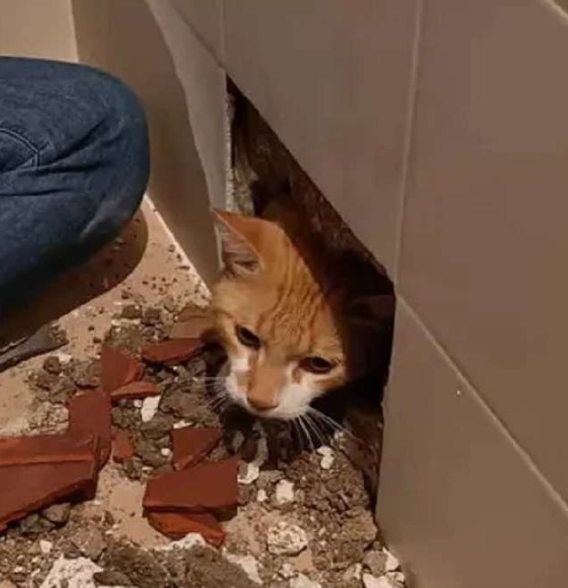 O gato entrou no buraco da parede enquanto os trabalhadores reparavam a parte da banheira, e sem que percebessem colocaram os azulejos com o gatinho preso. O caso aconteceu em 23 de setembro em Madrid.