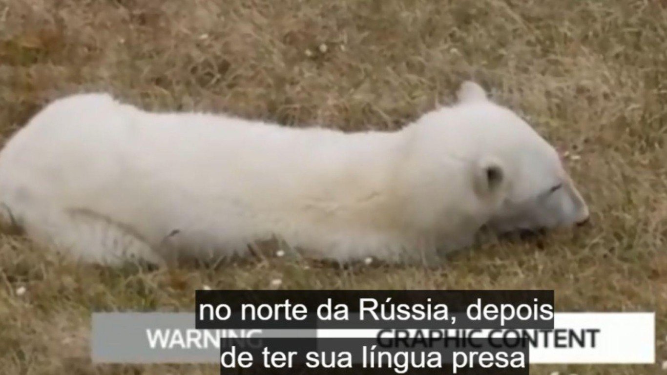Uma equipe do Zoológico de Moscou resgatou um urso polar com uma lata de leite condensado presa na língua.
