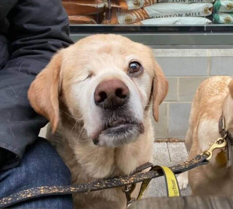 Oliver foi resgatado quando era apenas um filhote, alguns meses após o seu nascimento foi atacado por outro Labrador adulto, o que provocou o prolapso do seu olho.