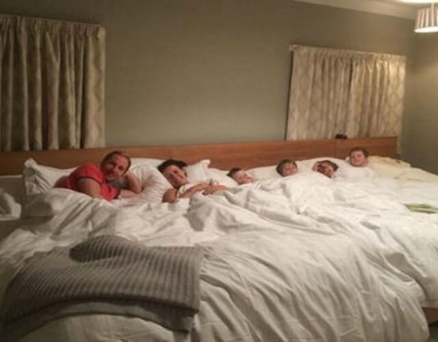 Os pais, irlandeses, Kim e Ryan Constable, resolveram achar uma solução divertida e prática para garantir um sono gostoso e seguro para seus quatro filhos: uma cama que coubesse todo mundo.