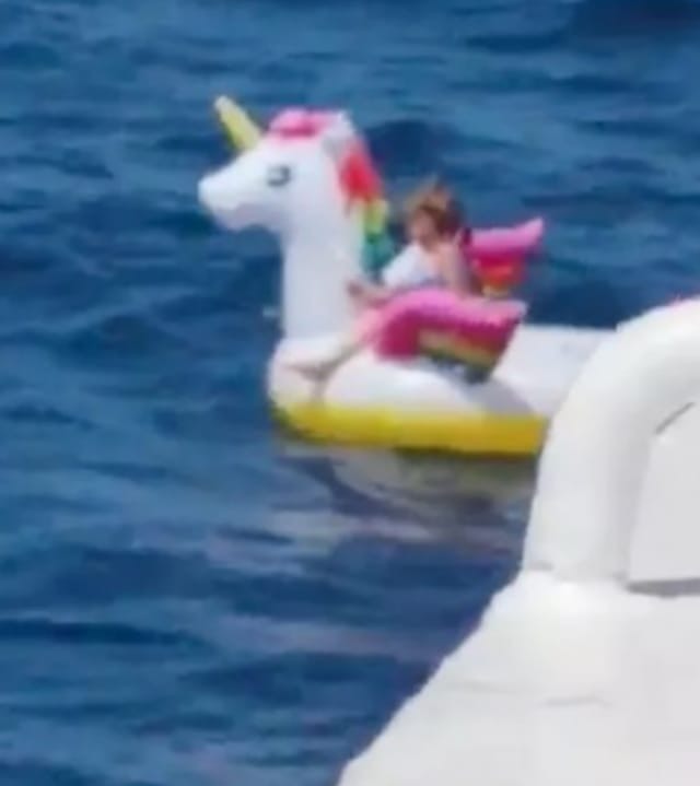 Na segunda-feira, (24), uma menina de 4 anos de idade foi encontrada à deriva em uma boia de unicórnio, a 500 metros da costa de Antirrio, na Grécia. A criança estava na praia com sua família e foi levada por uma corrente que a afastou do local.