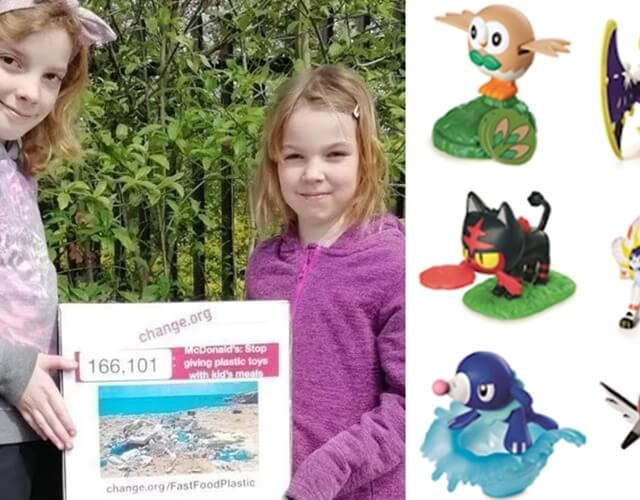 Pensando nisso, duas garotinhas inglesas, Ella e Caitlin, de 9 e 7 anos respectivamente, fizeram uma petição pedindo para que as empresas de fast food parem de distribuir brinquedos de plástico para as crianças.