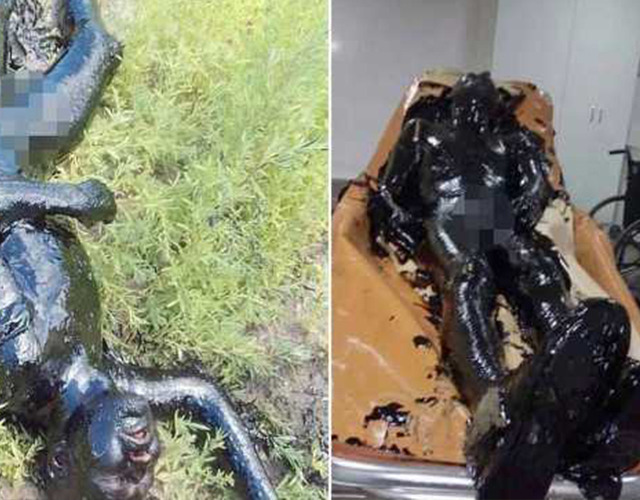 Um homem não identificado de 33 anos sobreviveu após cair em um tanque cheio de piche (asfalto em estado líquido) em uma fábrica abandonada na cidade de Pavlovsk, perto de São Petersburgo (Rússia).