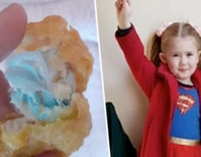 Laura Arber, a mãe de uma criança de 6 anos, denunciou a famosa rede de fast food McDonald´s depois que sua filha quase morreu engasgada com um pedaço de máscara azul dentro de um dos nuggets de uma caixa com 20.