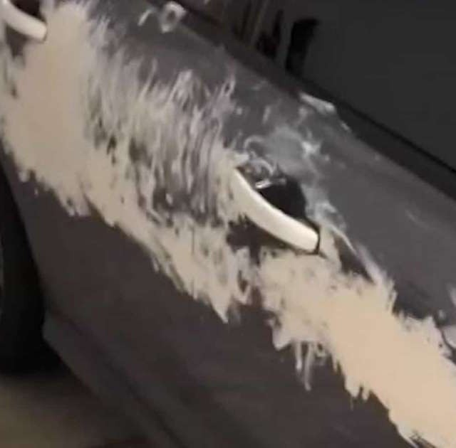 O pequeno norte-americano Cassius, de apenas 3 anos foi pego em flagrante pintando de tinta branca o carro do seu pai Aaron Clark. O pai da criança levou um grande susto quando viu a grande obra de arte que o seu filho havia feito.