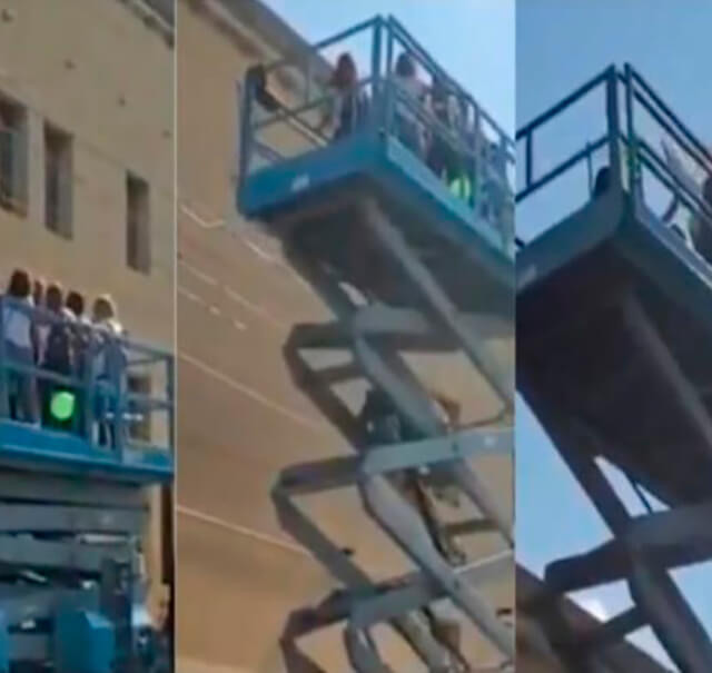 Como as visitas são restritas por causa da Covid-19, as mulheres alugaram uma plataforma elevatória, uma espécie de guindaste, pra que pudessem alcançar a janela do Hospital Fleming de La Plata, em Buenos Aires, na Argentina.