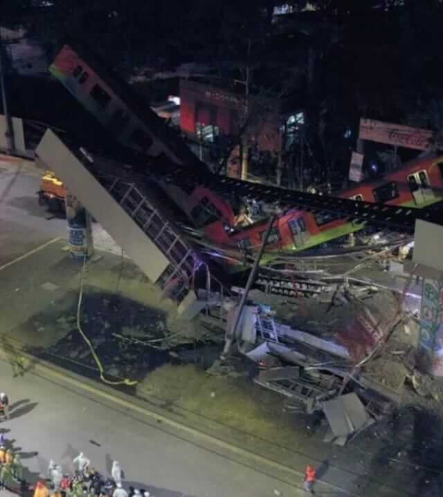 O viaduto da linha 12 do metrô da Cidade do México, que vai de Mixcoac a Tláhuac, caiu entre as estações Los Olivos e Tezonco. A linha 12 é a mais nova e também a mais extensa do metrô da cidade. Socorristas e bombeiros trabalharam durante toda a madrugada para retirar os passageiros dos escombros. No entanto, devido ao risco de colapso da estrutura do viaduto, o resgate precisou ser suspenso temporariamente.