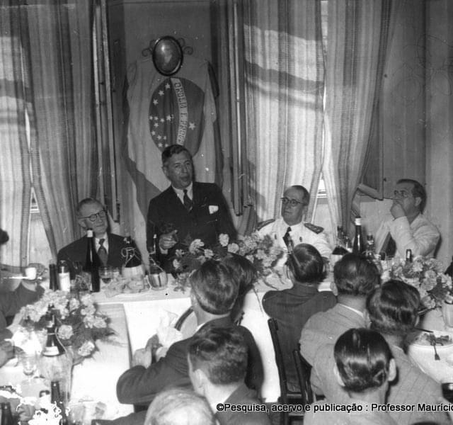 Foi por esse motivo que Assis Chateaubriand esteve em Jundiaí, numa imagem que mostra várias pessoas em mesas, num banquete. Uma delas é o então prefeito Manoel Aníbal Marcondes.