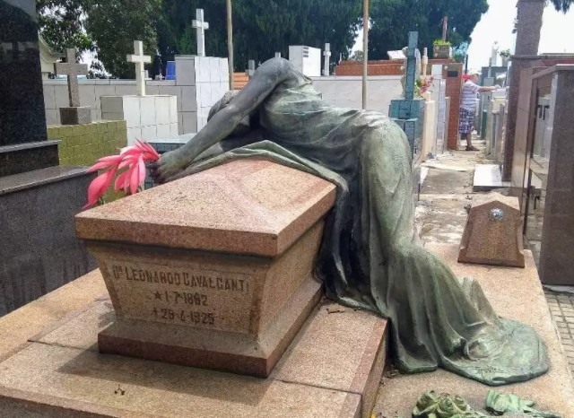 Especialmente de Leonardo Cavalcanti, conta a história que a escultura da mulher retratada sobre o caixão é a noiva do engenheiro, que faleceu vítima de um choque elétrico. A estátua retrata a sofrida despedida durante o sepultamento de Leonardo.