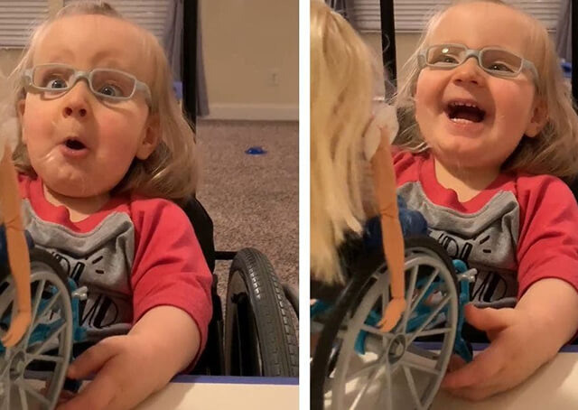 Ella Roger é cadeirante após nascer com “Espinha Bífida”, e quando ganhou de Natal uma Barbie em uma cadeira de rodas, seu rosto de iluminou completamente, por se sentir representada!
