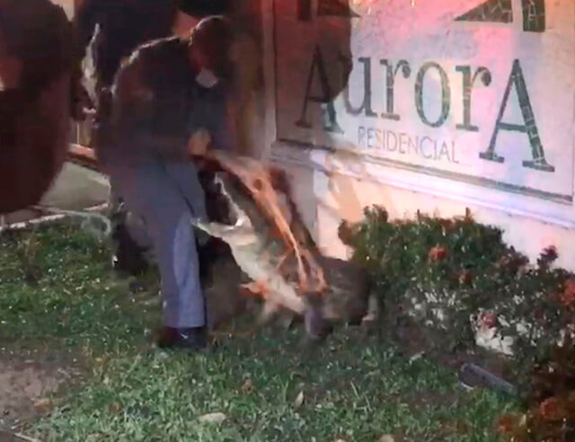 Um jacaré foi capturado perto da entrada de condomínio no bairro João Aranha, em Paulínia (SP), na noite de quinta-feira (24). O caso mobilizou equipes do Corpo de Bombeiros e da Defesa Civil.