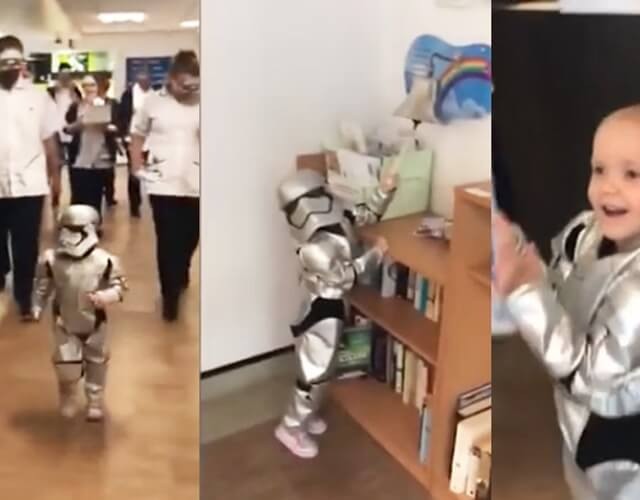 Audrina Hatton-Wright, de 4 anos, deixou vários internautas morrendo de amores ao comemorar seu tratamento contra um câncer fantasiada de Stormtroomper, da saga ‘Star Wars’.
