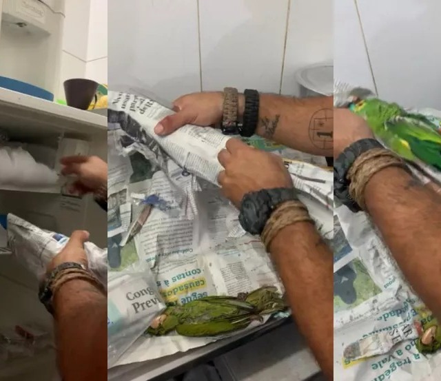 Porém, ao abrirem uma geladeira no local, se depararam com um outro papagaio, quatro passarinhos e três maritacas, todos mortos.