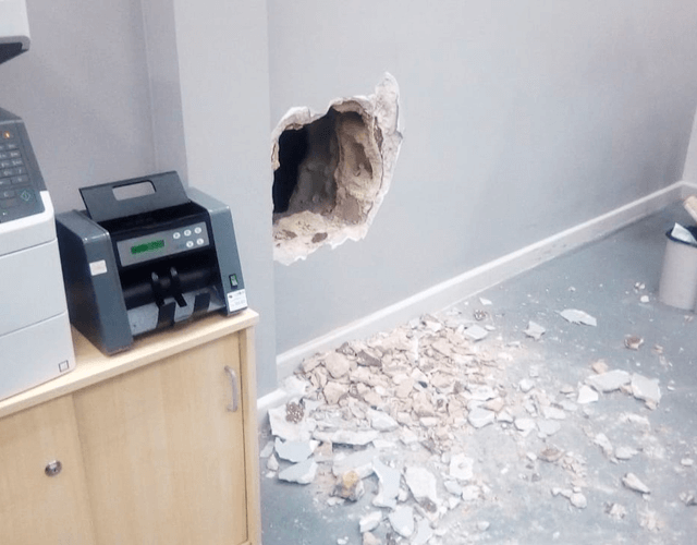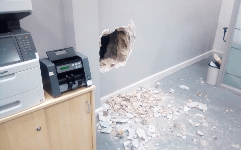 De acordo com a Polícia Civil, um segurança contou que os suspeitos arrombaram a agência e, com uma lixadeira, acessaram a área de atendimento. Um outro furo feito com o equipamento atingiu as costas do cofre, o que fez com que o alarme da agência disparasse.