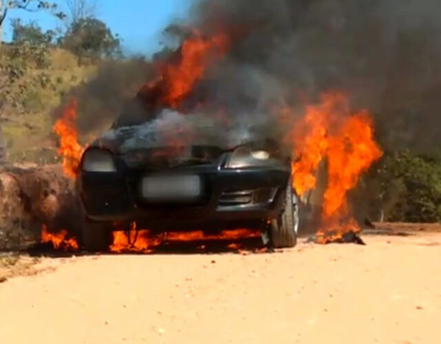 O carro usado na ação foi encontrado abandonado e em chamas na Estrada José Piovisan Filho, no bairro Caxambu, em Jundiaí.