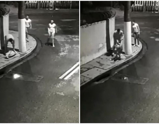 Nas imagens, é possível ver um grupo carregando um saco na madrugada de quarta-feira (5). Ao chegar na esquina da Rua João Cantareira, um rapaz joga os gatos.