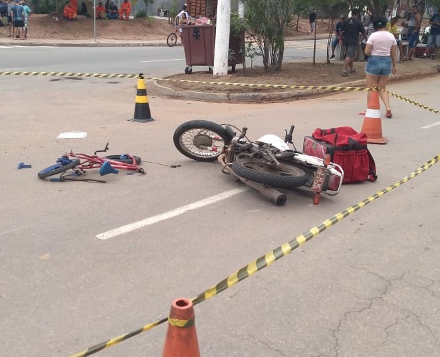 No momento a via estava interditada nos dois sentidos para o tráfego de veículos e devidamente sinalizada, para a segurança dos pedestres. Mas segundo informações, o motociclista que estava em um comércio dentro do perímetro interditado, saiu do estabelecimento e seguiu pela faixa em que não havia foliões, colidindo com a criança que andava de bicicleta.