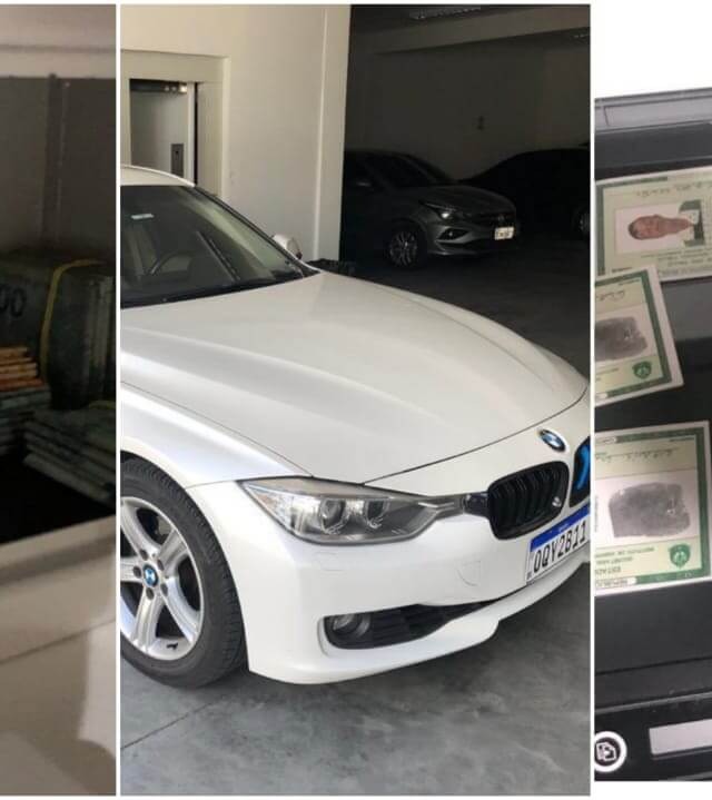 No cofre do acusado foi encontrada a quantia de 65 mil reais. Ele também possuía uma pistola 9mm, mas devidamente documentada, sendo apreendida por motivo de cautela. O veículo, uma BMW de cor branca, ano 2014, foi recolhida ao pátio conveniado da Polícia Civil.