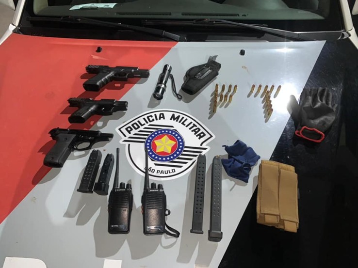 No local, o dono da casa mostrou onde as armas estavam guardadas. Foram apreendidas uma pistola Glock G17 calibre 9 milímetros e duas pistolas calibre 380 – uma Taurus PT138 e uma Bersa. Munições e dois carregadores prolongados de 30 municções da Glock 9 mm, além de dois rádio-comunicadores e joias diversas