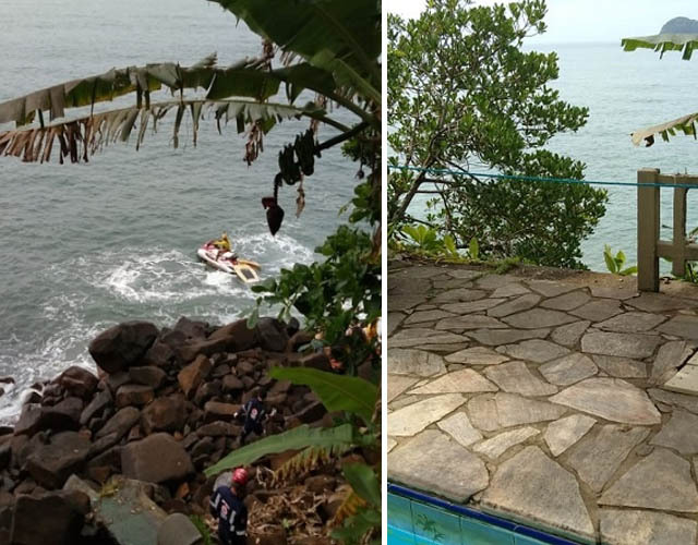 Por volta das 7h30, o casal de turistas de São Bernardo do Campo, tirava fotos com a praia de Juquehy ao fundo, quando o parapeito do deck se rompeu e ambos caíram na costeira de uma altura de 10 metros.