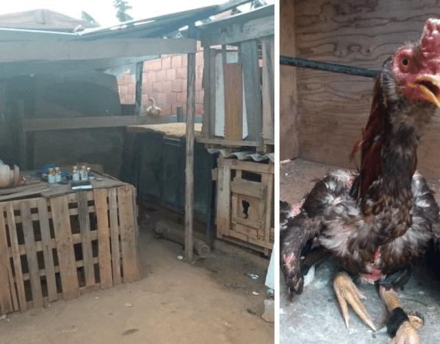 Na rua Francisco Viana de Carvalho, os agentes encontraram onze indivíduos e oito galos, sendo que dois animais estavam bastante machucados. Além disso, os guardas também localizaram seis esporas artificiais, algumas ainda estavam presas às aves.