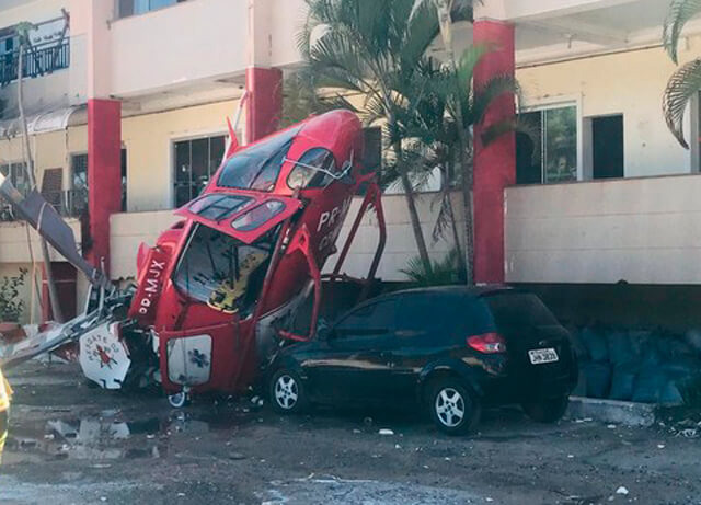 A aeronave tentava pousar quando atingiu um carro estacionado no local. Um vídeo, gravado por testemunhas, mostra uma nuvem de poeira densa bloqueando a visão no momento em que o helicóptero estava a poucos metros do chão.