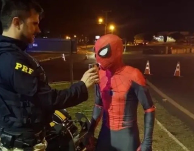 Nem mesmo o Homem-Aranha escapou da blitz da lei seca em Foz do Iguaçu, no Paraná. A Polícia Rodoviária Federal (PRF) fez a abordagem na última sexta-feira (4), na BR-277, enquanto havia um rodeio no município. Dois homens fantasiados chamaram atenção dos agentes rodoviários.