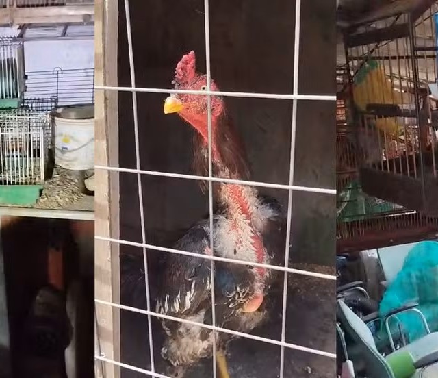 A condição do espaço era precária e os animais estavam confinados em gaiolas pequenas que não recebiam limpeza há meses, conforme relatado pela corporação. Muitas dessas gaiolas, destinadas a galos, apresentavam vestígios de sangue em suas estruturas, suscitando a suspeita de que rinhas entre as aves poderiam estar ocorrendo.