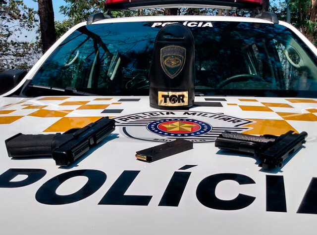 Durante vistoria, os PMs encontraram uma sacola com uma pistola calibre 380 e sete munições intactas.