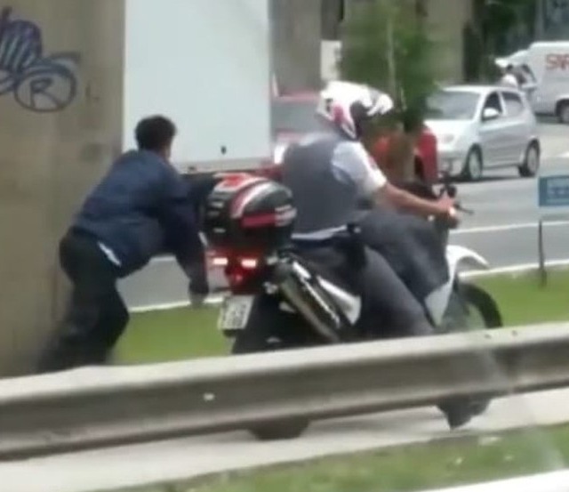 “Momentos depois, o suspeito colidiu a motocicleta com uma viatura do SAMU e tentou a fuga a pé, sendo preso metros do local da colisão. Após a detenção, o policial militar filmado conduziu o suspeito como mostrado nas imagens para próximo da motocicleta colidida, pois teve a preocupação de que alguma pessoa pudesse roubar o veículo que estava na via pública”, continua o comunicado da PM.