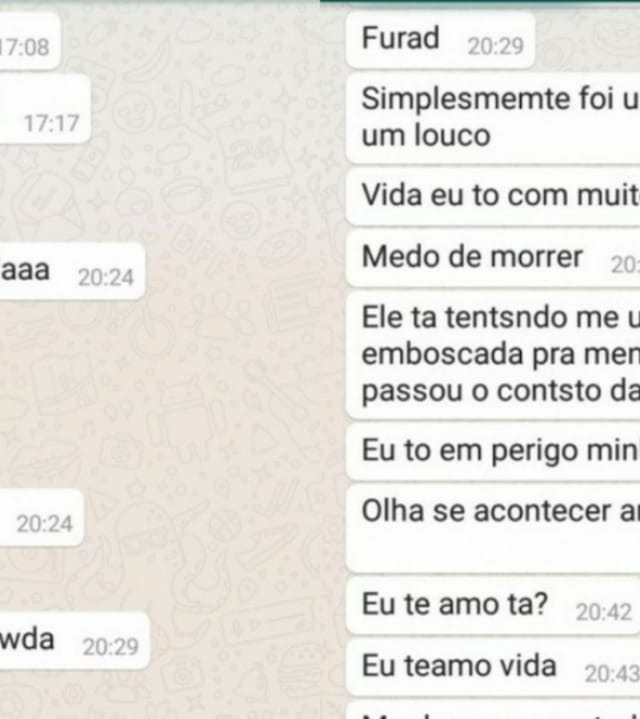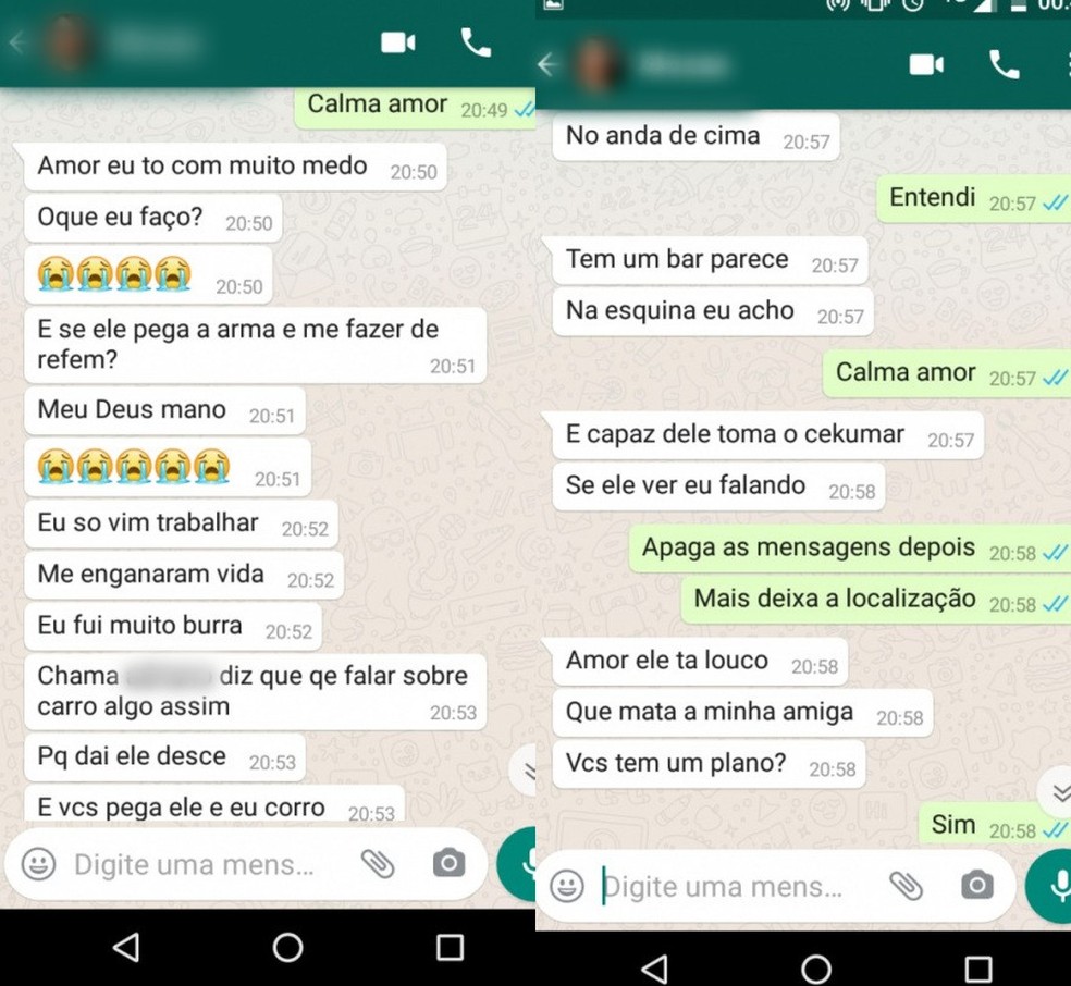 Depois de cerca de três horas sem contato pelo WhatsApp, a moça enviou a primeira mensagem ao namorado, dizendo que o homem a sequestrou. Nos textos, relatou o medo de ser morta pelo suspeito.