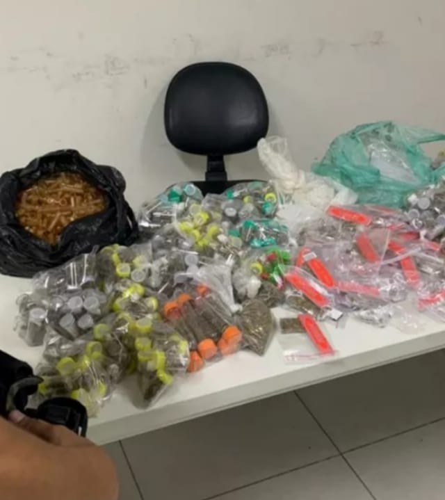 Os policiais encaminharam o homem e as drogas para o Plantão Policial, onde elaboraram um flagrante de tráfico de drogas.