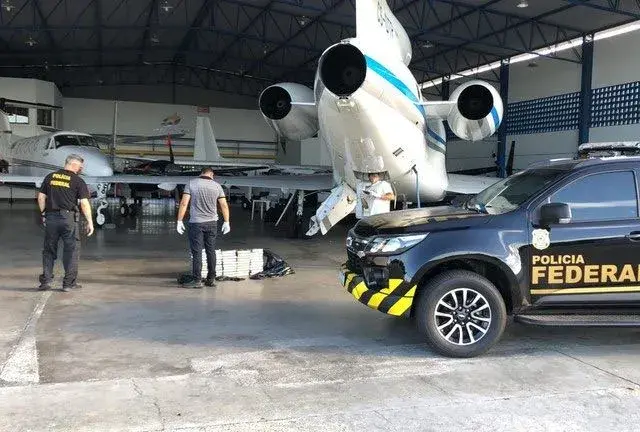 Segundo a Polícia Federal, foram encontrados cerca de 595 kg de cocaína escondidos na fuselagem da aeronave.
