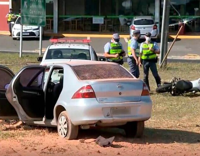 Uma motociclista morreu, nesta manhã de terça-feira (28), após ser atingida por um suspeito em fuga da polícia em um carro roubado, em Louveira, no interior de São Paulo.