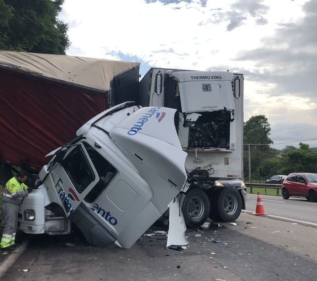 Dois motoristas saíram sem ferimentos após um acidente no quilômetro 64 da rodovia Dom Gabriel Paulino Bueno Couto, em Jundiaí, nesta quinta-feira (23), quando uma das cabines chegou a se soltar.