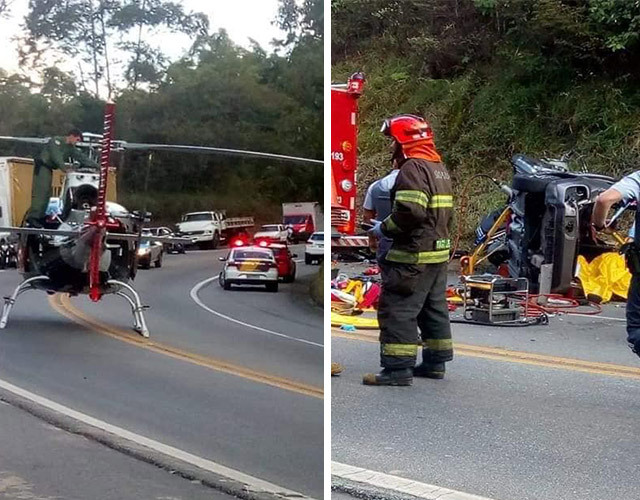 O helicóptero Águia da Polícia Militar foi mobilizado para poder chegar com uma equipe médica até o local, que estava com grande congestionamento.