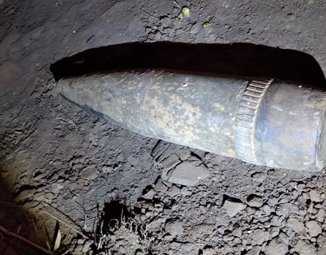 Na noite desta terça-feira (06), um projétil de 105 milímetros da década de 70, de uso exclusivo das Forças Armadas, foi encontrado na região do Distrito Industrial. O artefato estava enterrado em uma área da Avenida Francisco Roveri.