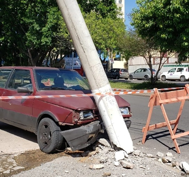 Na madrugada deste domingo (29), um motorista colidiu seu veículo Fiat Uno contra um poste na rua Pitangueiras, no Vianelo. O acidente ocorreu em frente ao Hospital da Sobam e com o impacto danificou o poste de energia elétrica.