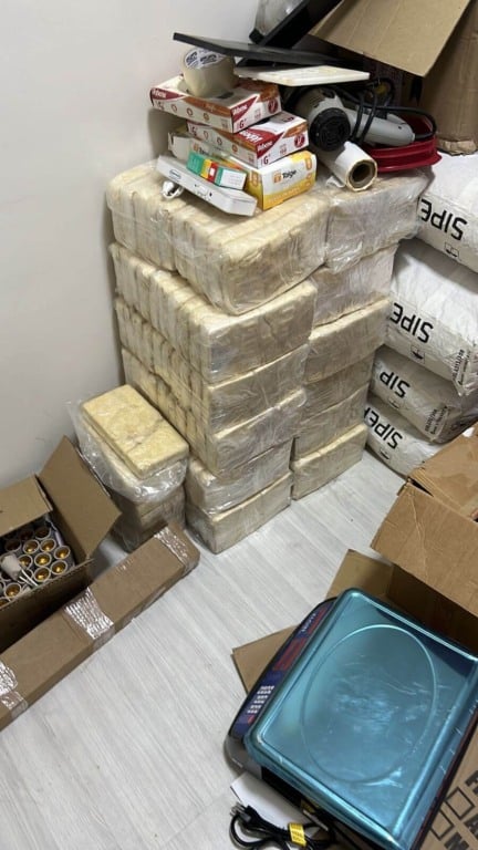 Em outro cômodo estava instalada uma espécie de estufa com luminária para secagem de material. Os policiais ainda encontraram 128 tijolos de cocaína. Na casa havia também medicamentos usados para diluir a droga, máquinas de contar dinheiro, com maços amarrados totalizando mais de R$ 11,7 mil.