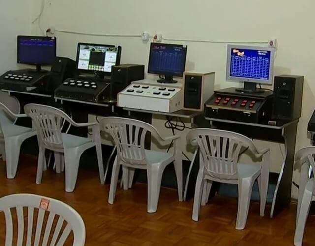 Em dois quartos foram encontradas as máquinas de bingo eletrônico. A polícia informou que o jogo era muito parecido em todas as telas e as apostas eram feitas diretamente no terminal.