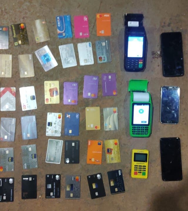 Durante a ação, foram encontrados 48 cartões de banco, 2 máquinas eletrônicas para pagamento com cartão de crédito e débito, além de 3 celulares. Para executar o crime, eles se passavam por ambulantes na venda de bebidas, quando então faziam a troca dos cartões, além de venderem fichas falsas de cerveja e refrigerante para os consumidores.
