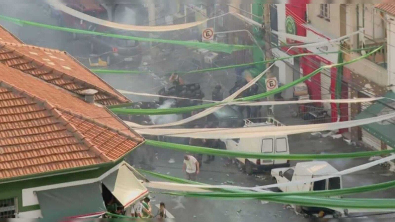Com toda a confusão, a cavalaria da PM e a Tropa de Choque foram chamadas, e os agentes dispararam bombas de efeito moral e balas de borracha para dispersar os torcedores que se concentravam na região, o que gerou correria para as ruas próximas.