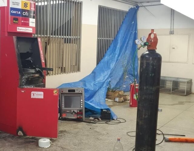 Dentro do mercado os policiais apreenderam equipamentos usados para cortar o único caixa eletrônico instalado na loja. Ainda segundo os policiais, o trio não conseguiu cortar o local onde fica o dinheiro.