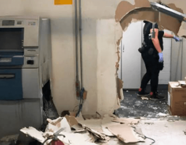 Os criminosos arrombaram dois caixas eletrônicos do posto do Banco do Brasil, e levaram outro na fuga.
