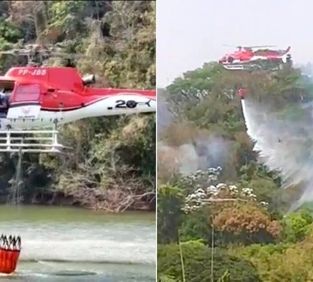 O helicóptero tem feito os constantes abastecimentos utilizando as águas das represas do município como fonte da operação.