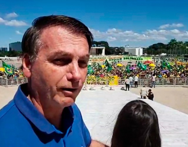 O presidente participou neste domingo do ato pró-governo que é contra o Supremo Tribunal Federal (STF) e o presidente da Câmara dos Deputados, Rodrigo Maia (DEM-RJ).