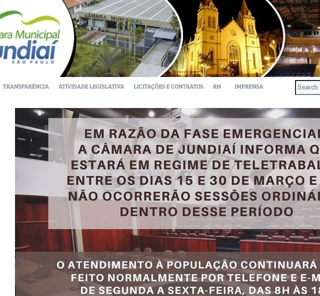 A Câmara Municipal de Jundiaí anunciou, na tarde desta quinta (11), que as sessões marcadas para os dias 16, 23 e 30 deste mês estão canceladas. A decisão atende a determinação do Governo do Estado após decreto da fase emergencial para combate à propagação do novo coronavírus.