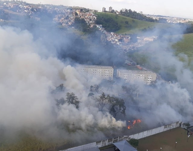 No domingo (12), por volta das 14h, um incêndio atingiu um terreno ao lado de um condomínio, no Jardim Tamoio, em Jundiaí (SP).